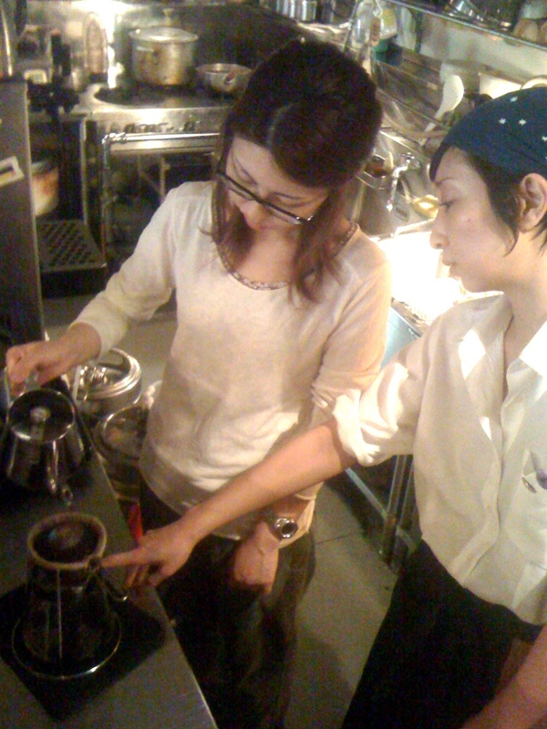 始まってます、井上さんのコーヒー修行!美味しい豆だから大丈夫‼キメちゃんご指導よろしくね。(ぬ)