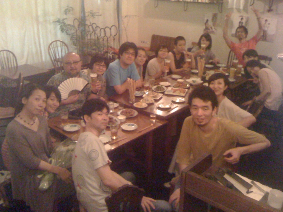先日、日曜の営業終了後、ホールスタッフきめちゃんの送別会をささやかに行いました!・・・のはずが、本当にたくさんの皆様にお集り頂きまして、どうもありがとうございました‼「カンパ〜イ」の図。(ぬ)