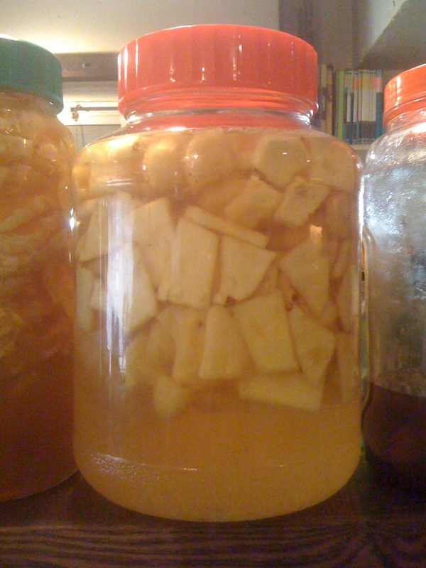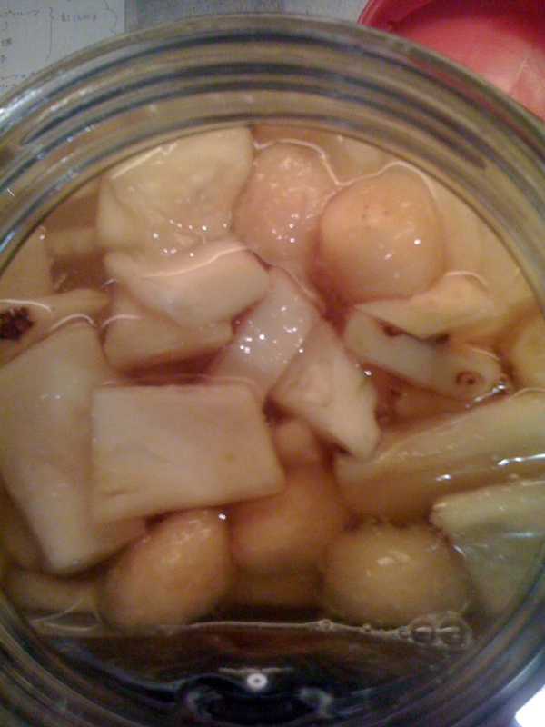フルーツを引き上げまして、シロップはペーパーでこしました。黄金色の綺麗なお酢シロップの出来上がり。前のものがまだ少し有りますので、そちらが無くなり次第、今週末にはこちらのミックスフルーツ酢がお目見えするかと思います〜!(ぬ)