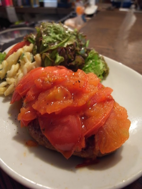 えぇ、やっぱりこちらも本日最終日の「フレッシュトマトのハンバーグ」!…って、ワタクシ、この夏は多分これで三度目でしょうね、えぇ、いただきます〜と、マクロ撮影でパチリ。(お)