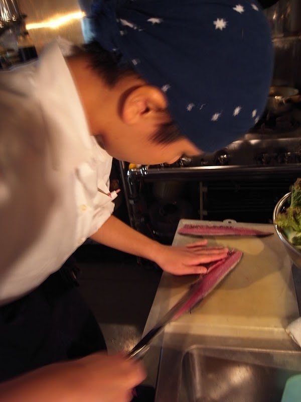 この季節、毎日毎日、何度も何度も、さんまを捌くのが新人キッチンスタッフの定番仕事となっております…って、この秋は春からキッチンにコンバートされたのだみ!速く、そして美しく捌けるようにがんばって下さいね。(お)