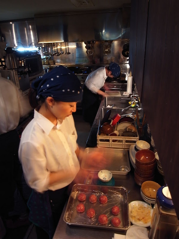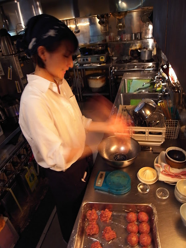 新人スタッフ午後の仕込み仕事は、まずは肉団子丸めが登竜門!…って、新スタッフの堀内さん(通称はホーリーに決まりそう?)、なかなか慣れた手つきでぺしぺしと、えぇ、写真で見るとメニモトマラヌ速さ!(笑)…って、あの、ワタクシ、なかなか写真が上達しませんね(苦笑)、えぇ、いつもほんのりピンぼけで申し訳ない(苦笑)。(お)