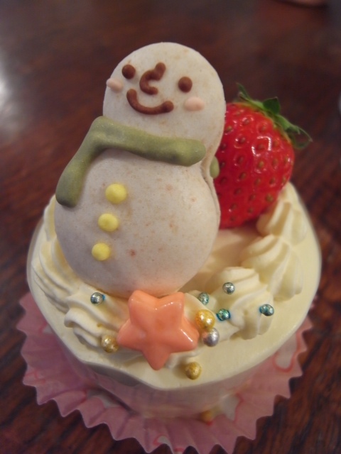 いや、凝ってますね、雪だるまのマカロンも手作り、アイッシングが得意のホーリー、スポンジの中にはパッションフルーツがさわやか!ワタクシ(おじさん)もおいしくいただきました!最高のクリスマスケーキでした!(お)