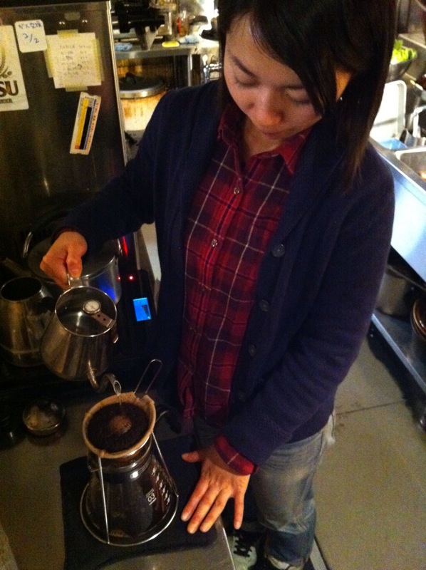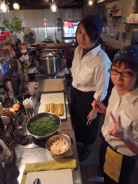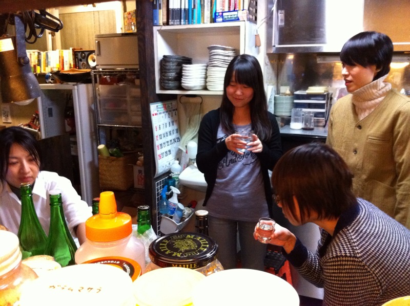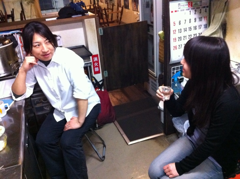 昨夜仕事上がり、若干二十歳、当店では一番の若手スタッフのにゃんさん…って、実はなかなかお酒はイケる口?ということで、今夜は日本酒いってみましょう!と、店長ミヤザキ、定番の日本酒を準備中…見守るにゃんさんも、なかなかイイネ(笑)。(お)