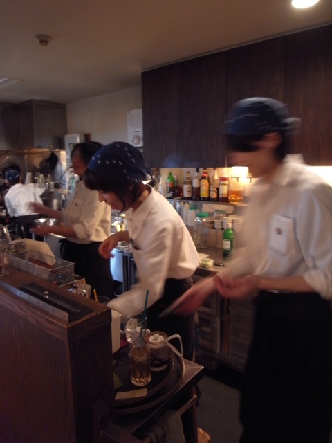 来月は遅番シフトで出勤のイノさん、夜のドリンカーもずいぶん慣れましたねと、小さな宴会の乾杯ドリンク、手分けして準備中です!(お)