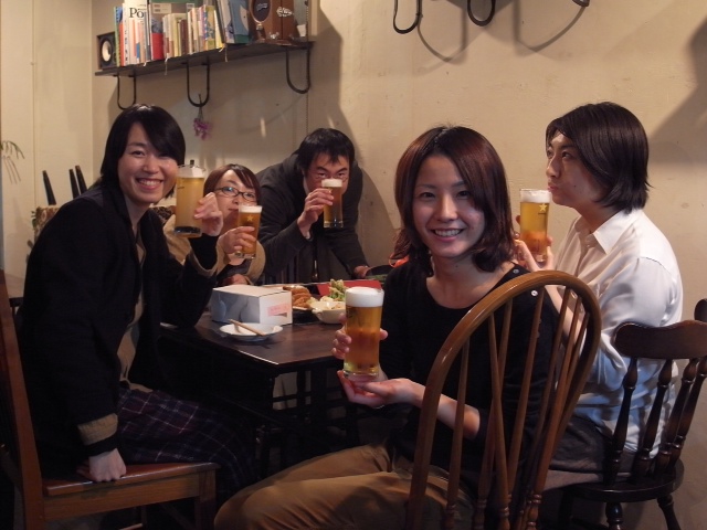 ということで、えぇ、あすナロサイン会あとのディナータイムは久しぶりのまっつん登場!今んとこ今月で一番忙しかった今夜、まっつんのスピードが光ってましたね、えぇ、たすかりましたよと、片付けも終わって日曜深夜、お疲れさんの乾杯ですよ!(お)