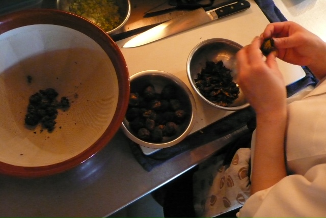ふきのとうは、ガクごと網で焼く…匠のワザ!はまちゃんが焼き上がった、ふきのとうのガク部分を丁寧に取り除いております。すり鉢で味噌と合わせて…自家製ふきみその出来上がり!日本酒『あたごの松』と合わせて頂くのがオススメでございますヨ!(ぬ)