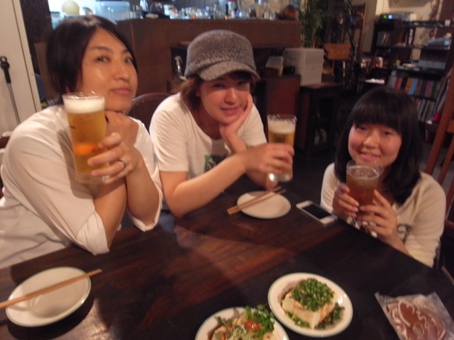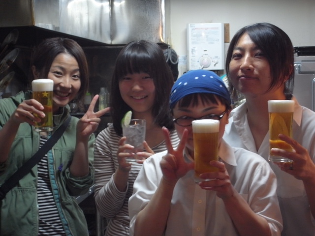 えー、ランチはくろちゃん、夜はきめちゃんと、ある意味夢のゴールデンリレーでありました母の日の日曜日、昼夜ともにたくさんのお客さんに恵まれ、二人とも大活躍、いやいやありがとうねと、お疲れさんの乾杯であります!(お)