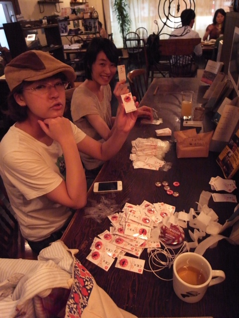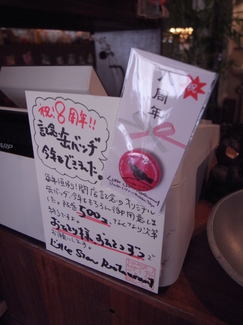 ということで、昨夜遅くまで8周年の準備に勤しんでいたのはワタクシドモオーナー夫婦とはま子だけじゃない!レギュラースタッフののだみもぬまっちも志願して、仕事あがりはビールでものみつつ、記念バッヂすべての袋詰めを完了させてくれました!あぁ、、ありがとう、そんな気持ちが今のうちを支えてくれてるんだな、うれしいね。(お)