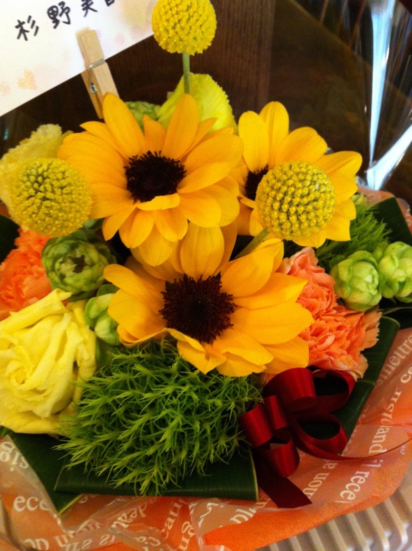 皆様からいただいた8周年お祝いのお花をケアしております、いのさん。入れ替え差し替え、アレンジメントし直し中。サスガですね〜。ちなみに、ガーベラの茎はお水に浸けすぎるとすぐに腐ってしまうので、要注意なのだそう。いや、サスガです!(ぬ)
