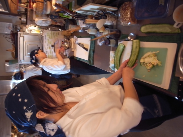 ということで、店長ミヤザキゴーヤの ワタ取り下ごしらえは中。小さな新メニューで登場ですよ!(お)