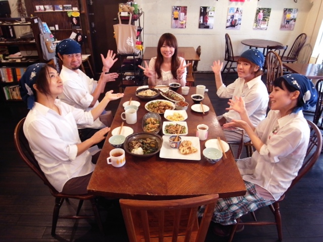 いやいや貸し切り宴会はなごやかに、しあわせに、そして本当に楽しい会でした、えぇ、ありがとうございました!…って、貸し切り後は残りものでいつもよりちょっと豪華な賄いをみんなでいただきましょう!と、もちろんみちゃにはお誕生席!ハタチの笑顔がすてきです!…と、まわりのおちゃらけ4人組、えぇ、なんですか、大のオトナがその体たらく(笑…いや、ちょっとオモシロイね)。(お)