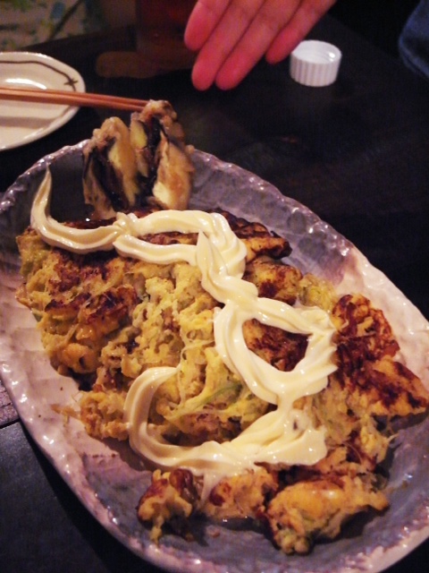 あー、クロコママ直伝(?)、当店きってのB級メニュー(賄いオンリーでヨロシク…笑)、キャベセンのたまご包み焼き…めがねマヨネーズのせ!(苦笑)いやいや、ワタクシ、この「ウラ★スタ」を連投している間に、あらかたはけてしまいましたが(笑)、えぇ、これからいただきます…って、この写真で定休日に入るのはどうなの?(笑)ねぇ、どうしよっか?(お)