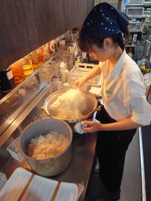 朝のふんわりいいお仕事と言えば、ベテランスタッフ沼田さんのイチオシ!「釜から炊きたてごはんの移し替え」!…今日はみちゃにがせっせと移してくれてますよと、ツヤツヤごはんのいい匂い、夏だから、ちょっと暑いけどね、そうだけどね(笑)。(お)