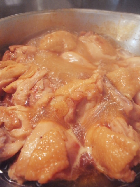 ワタクシ、賄いをたべ終わったそんな頃…なにやらおいしそうなものがぐつぐつぐつぐつ煮込まれてますよと、あー、賄いたべ終わったばかりなのに、こりゃ本当に旨そうだと(笑)、えぇ、なんですか?これはと…正解は「鶏肉のにんにく煮」!あぁ、酒の肴、小さなメニューはこんな風に作られてんのね、なるほどナルホド(笑)…ビールのお供にぜひ!(お)