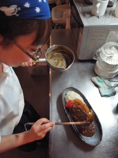 暑い夏、いやいやでもお昼はスペシャルメニューのがっつりカツカレーで元気にまいりましょうと…スタッフ的にも賄いカツカレーに名乗りを上げしその人は、世界最小のシェフ!はまちゃん!(笑)…って、いやいや、これがおいしそうですね、ワタクシも名乗りを上げればよかった夏の午後(笑)。(お)