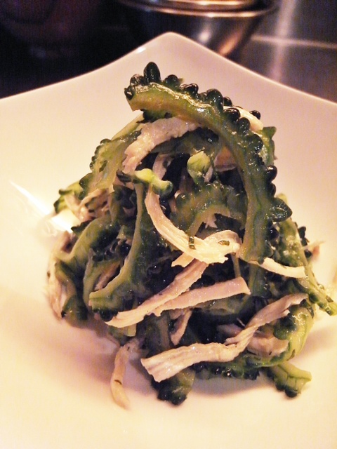 この夏の新メニューで、ワタクシがたいそう気に入っておりますのがこの「蒸し鶏と塩もみゴーヤのサラダ」!オリーブオイルがゴーヤの苦味をまろやかに包み込んで…サラダと言うより、夏の気の利いたビールのつまみ!今夜ぜひぜひ〜!(お)
