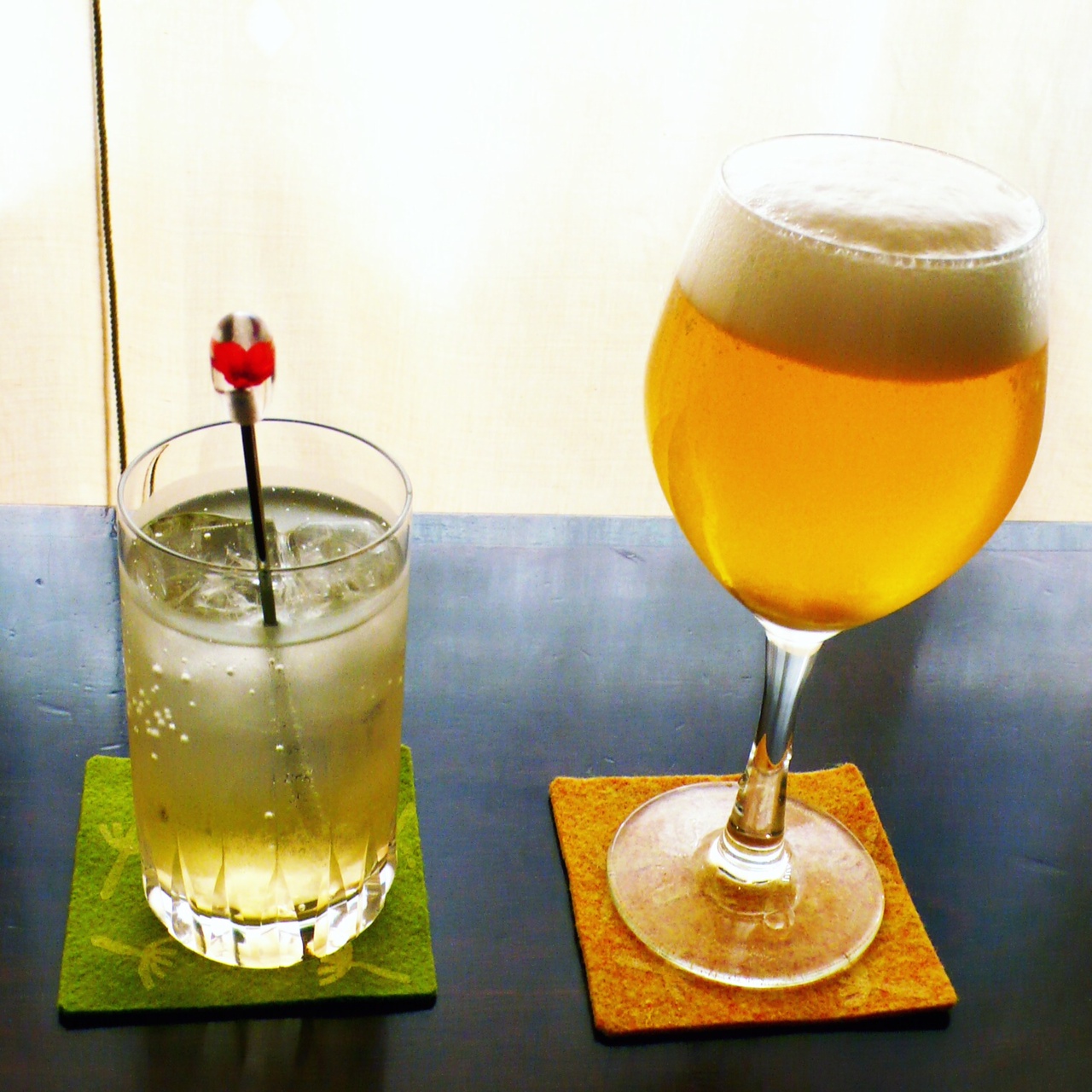 夏はやっぱりさっぱりさわやかがイイネ!と自家製ドリンクおススメは「梅リンゴ酢サワー」に、パイナップルのミックスフルーツ酢でビールを割ったビアカクテル「ミックスフルーツビール」!どっちもイイネ、イマダケヨ!(お)