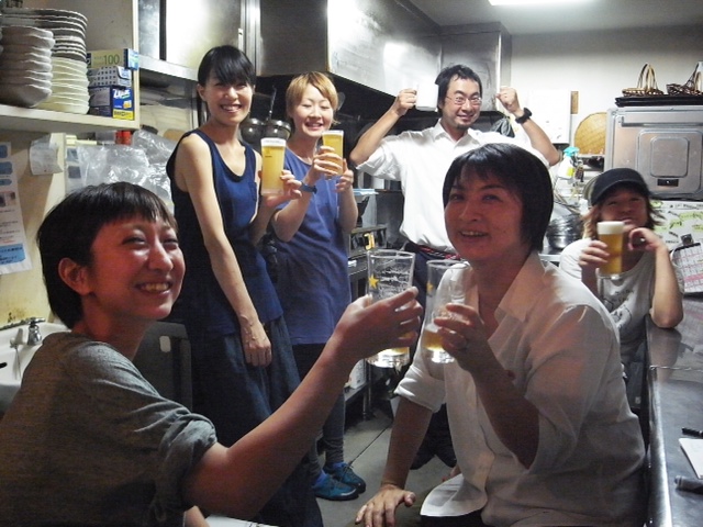 賑やかでした8月最後の土曜日の夜、仕事上がり、入口鉄の扉をコツンコツンと…あら、キメちゃん(笑)。友達とのんでて、盛り上がって、ちょっとみんなと話したくなってさーと(笑)、いいね、イイネ!(笑)いっしょにカンパイが楽しいね。(お)