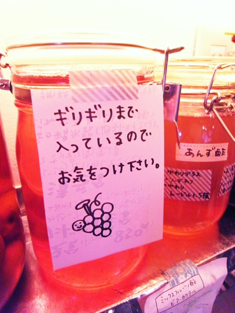 あー、日々、あれやこれやとギリギリな当店ではありますが(爆)、えぇ、本日さしあたって最もギリギリなのはこちら!保存瓶の「ミックスフルーツ酢」!(笑)只今ぶどうとバナナのミックスフルーツ酢なので、えぇ、イラストはそのぶどう、今ノリにノッテるホーリー画伯筆!はちみつあんず酢もお見逃しなく。(お)