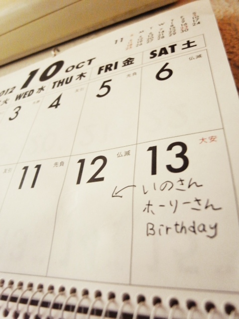 さっき夜の更新にも書いたんですけど、本日はホールスタッフのホーリーとイノさん、ダブルのお誕生日!…と思いきや、えぇ、これが痛恨の取り返しのつかないミス!実は昨日、すでにすっかり終わっちゃってますよと(苦笑)、ごめんねごめんねと、平謝りのあと、ちゃっかり修正済み(笑)。いやいや、今年4月のまっつんの時同様のミス、いやいやホントにスミマセン。(お)
