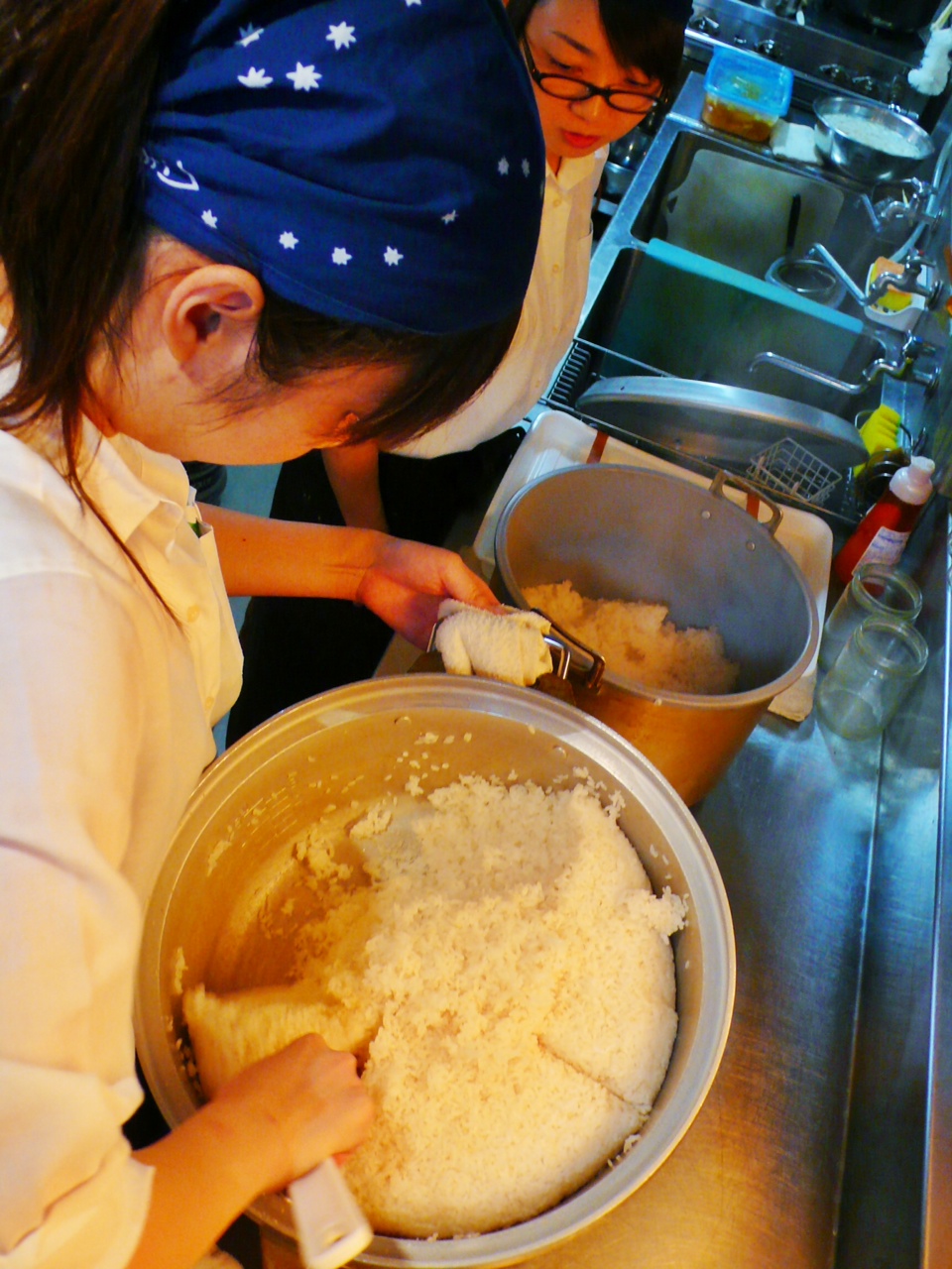 今年も新米の季節がやって参りました!古米に比べると格段に水分を多く含んでいるので、炊き上げる時の水分量が難しいんです。『お米の炊き加減はどうだい?』お米うつし中のみちゃに、はまちゃんのチェックが入ります。私も賄いで頂きましたけれども、もちもちと、非常に美味しかったです。いやぁ〜ご飯がすすみマス!!(ぬ)