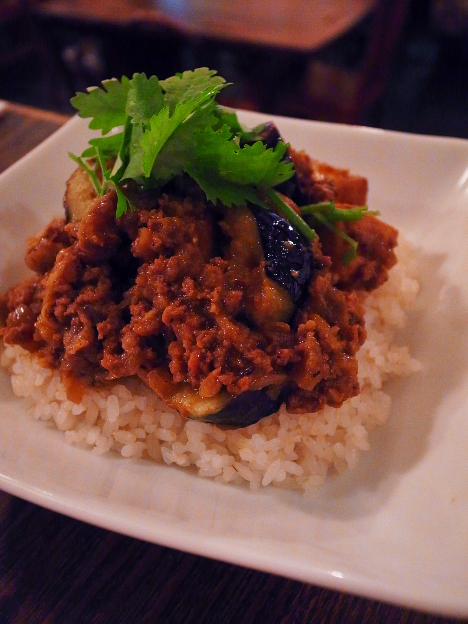 今週の夜カレーは、揚げ里芋と茄子のキーマカレー。旬のねっとりほっくり里芋に、軽くお醤油をかけて揚げています。茄子も揚げ茄子、キーマカレーはいつもより生姜を効かせて和風なような、キーマカレーです。お試しあれ〜(麻)