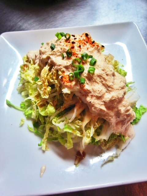 冬のサラダはやっぱり、冬の葉もの野菜、白菜!生のまんまざくざく細切りにしたら、とろりとツナマヨドレッシング!…って、実はその前に自家製、地味〜なこんぶ茶ドレッシングでした味付けてるから、旨味がしっかりなんだよなと…生の白菜のみずみずしいシャキシャキした食感、えぇ、これが思いがけずおいしいんですよ!ぜひぜひこの冬、何度でも〜(笑)。(お)