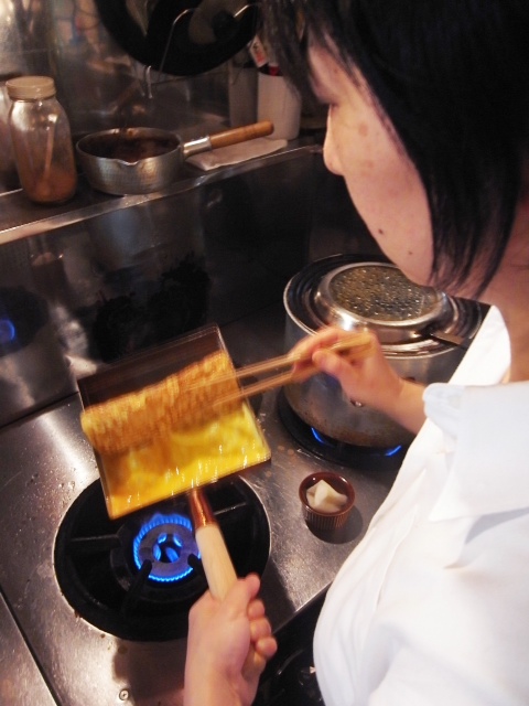 先日買い替えた玉子焼き器!いや、こんなことならもっと早く買い替えりゃよかった!というくらい絶好調!今までよりも熱の伝達がいいので、やや火加減は弱めで、素早く巻いていくんだそうなと、えぇ、性能のよい道具、すでにすっかり店長ミヤザキの手に馴染んでおりますね。あー、玉子焼き、えぇ、非常に長くお待たせすることも多々あれど、やっぱりたべたい一品でございます、ハイ。(お)
