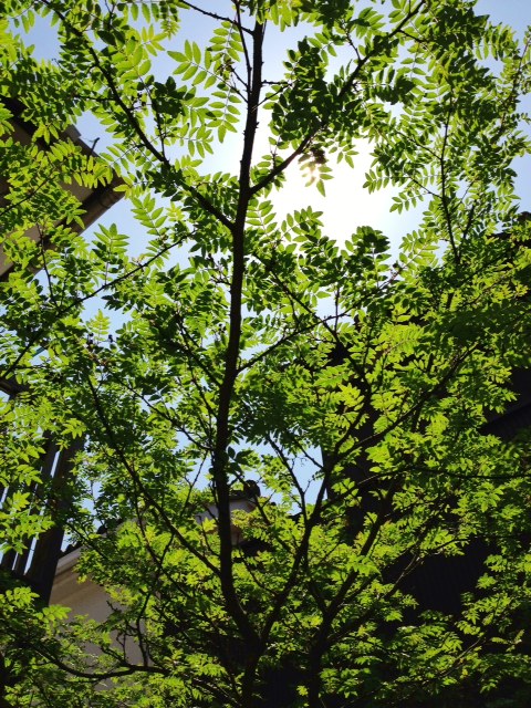 ということで、今朝出勤前に摘んできたミヤザキ家裏庭の山椒の木!いやこんなに青々若葉が茂り…料理に使うには大きすぎるものばかりで(苦笑)…ま、でもそんな中から選りに選ってやわらかくて小さい若芽を摘んできましたよと、えぇ、今夜もたけのこと合わせて、木の芽和えにチャーハン、お召し上がりくださいね!(お)