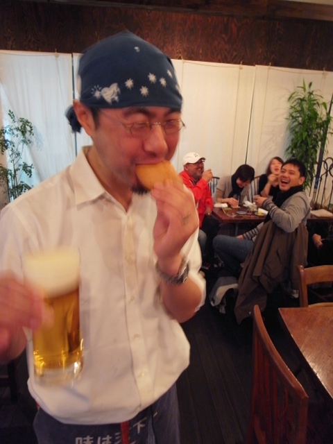 あー、ということで、実はワタクシ、okayan、本日誕生日でありまして、えぇ、昨夜深夜はいつものおなじみのお客さん…というか、このお正月には「ひばりスターレストラン」でもがっぷりご一緒させていただきました「チカぱん」のチカコさんに…最近うちの方ではなにかと話題の甘食!…手作りの甘食をプレゼントしていただきました!あーざっす!ということで、さっそくビールを片手にパクリといただきました、えぇ、ゴチです!(笑)(お)
