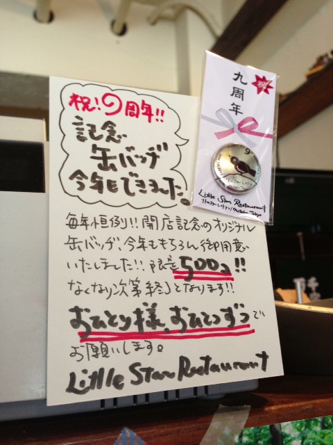 ということで、本日めでたく開店記念日は通称(?)「リトスタの日」を迎えました当店でございます、えぇ、ありがとうございます(笑)。と、もちろん日頃のご愛顧に感謝いたしまして、本日より1週間、恒例の小さなプレゼントは缶バッヂ!今年はいよいよ銀色!あー、ピカピカするね!うれしいね!