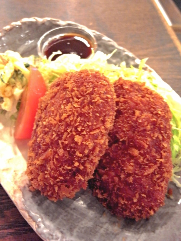 あぁ、なにげにコロッケに見えて、コロッケじゃないのよ、メンチカツ!(笑)からり揚げたて…ちょっと揚げ色が濃かったけれど、ざっくり中身はジューシーな肉汁と旨味、それがメンチカツの醍醐味じゃないの!そうじゃないの!と、ヒエヒエ生ビールにうってつけ!…もう、今夜はメンチカツにキマリなのだぁ!(笑…勢いだけですな)(お)