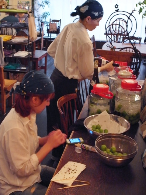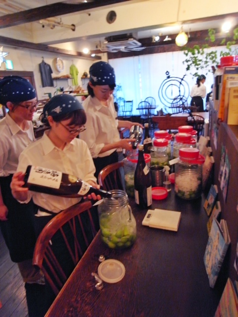 あー、金曜日ですよ、花金ですよと…すでに夕方ディナータイムも始まって、急げ〜!ラストスパートです!と今日も梅にチクチク穴開け残業してくれたウメさんも見守る中、リーダーぬまっちとキッチンスタッフはまちゃんが、最後の焼酎をざぶざぶそそぎます!このあとすみやかに大家さんのヒロヤショップさんに預けてあった去年漬けの梅酒と入れ替えも完了!今年の梅酒漬けもここに大団円となりました!お疲れさん!ありがとさん!(お)
