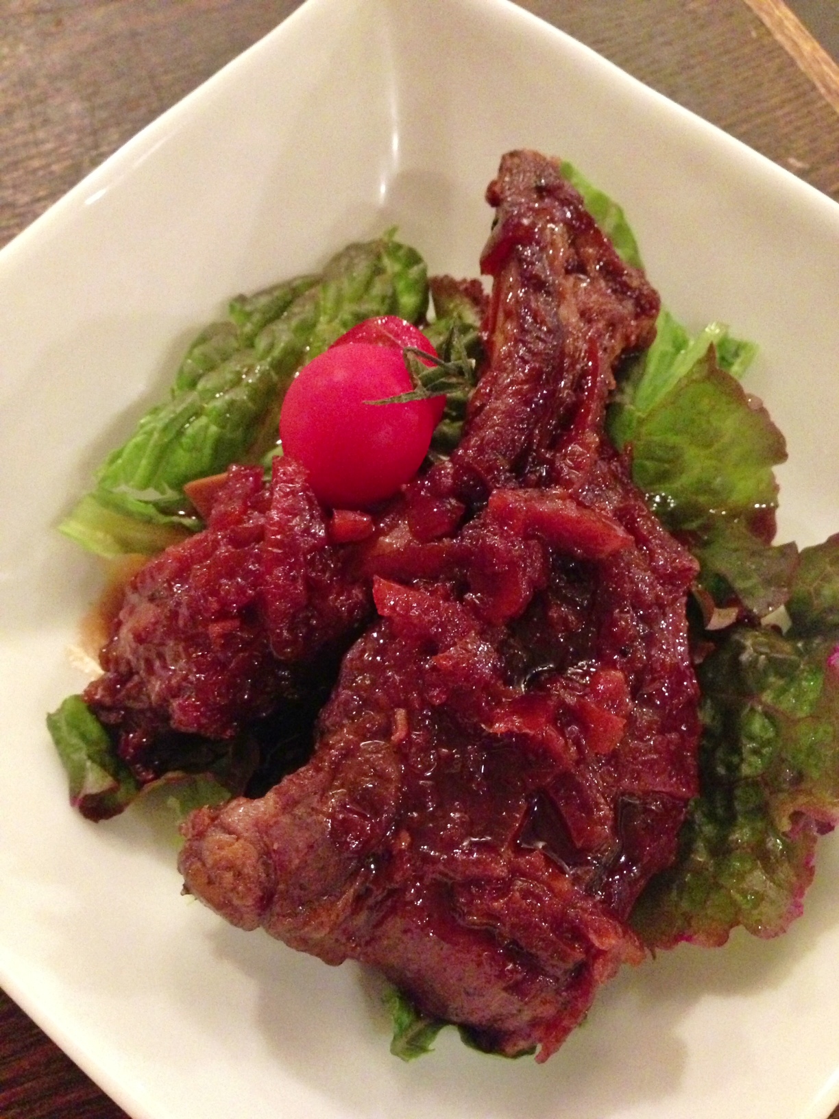 さて、スペアリブシリーズ第二弾?新メニューは、スペアリブの自家製マーマレード煮!甘夏で作った自家製マーマレードは甘さ控えめでほろ苦!バルサミコの酸味で爽やかに仕上げました。ビールにワインにうってつけ!(麻)