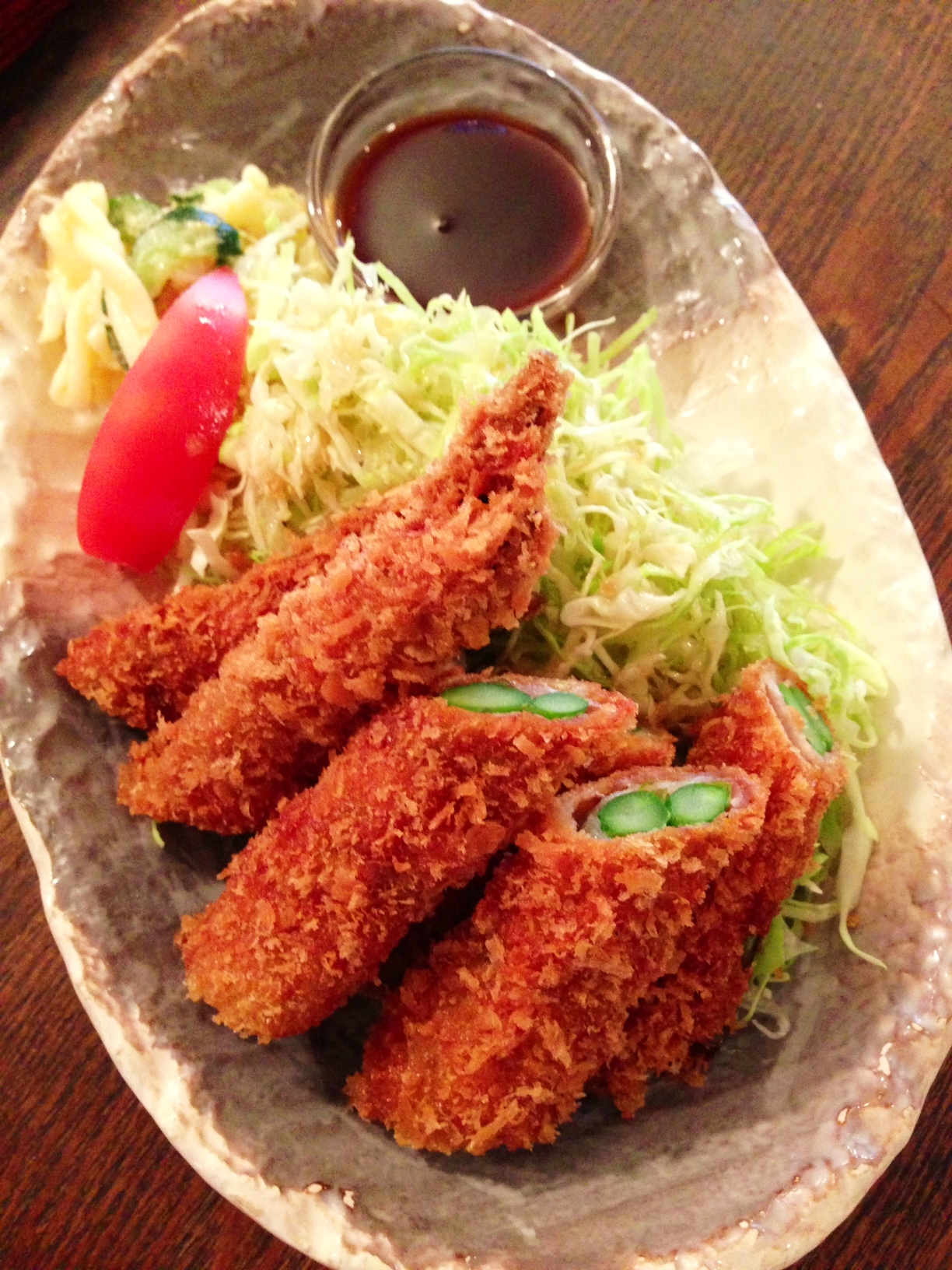 さて、北海道の友人から送られてきた新鮮プリプリのアスパラを豚肉で巻いて、フライにしちゃいましたよ‼甘やかなアスパラと豚肉の旨味、ポリっとサクッといただいちゃって下さい。数に限りありますので、今日までかも⁈(麻)