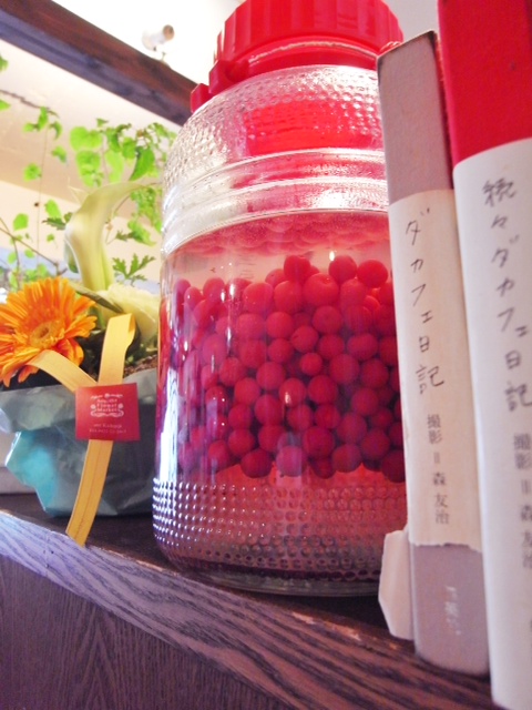 大学生スタッフにゃんさんのご両親に送っていただいたユスラウメ…沼田さんがさくっと洗って、そのままお酒に漬けてくれて数日たちましたが…あー、ほんのりお酒が色づいてきましたねと、えぇ、やっぱり気になるのは「それで何時のめんのさ!」(笑)…って、あー、ひとまずは3ヶ月くらいで様子をみて…ってかんじですかねと、あわてずさわがず、急がば回れ?…ま、おいしくなるまで気長に待ちましょ、そうしましょうね!(笑)(お)