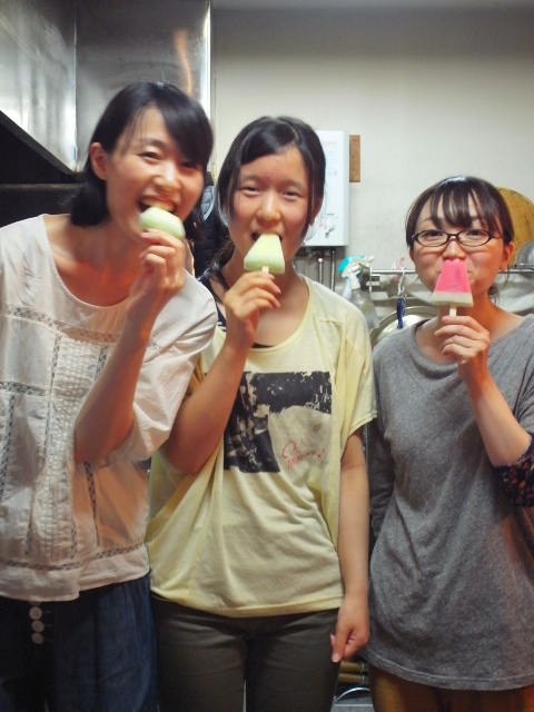あー、今夜は全然予約も入ってなかったのに、フタを開けてみれば大入り御礼!ディナータイム早々から遅くまで、忙しい夜でありましたね、おつかれさんは三人娘!…先日ホーリーが差し入れてくれたスイカ&メロンのアイスをいただきます!…あー、もう一日がんばりますか、ハイ(笑)。(お)