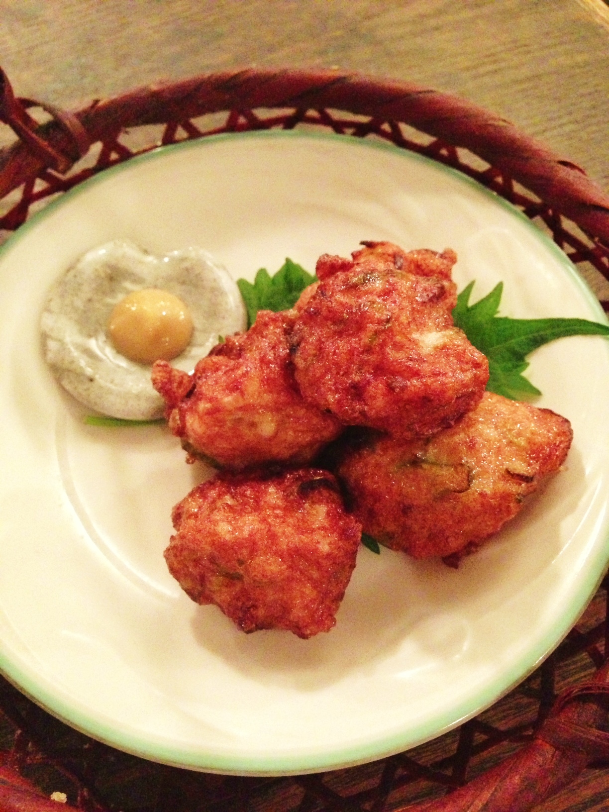 なにを隠そう、店長ミヤザキは練り物好き。なかでも、さつま揚げは特に好きかもしれない!というコトで、イカをさつま揚げ風の揚げだんごにして見ました。ネギがゴロゴロ入っているのがポイント。辛子醤油で召し上がれ‼(麻)