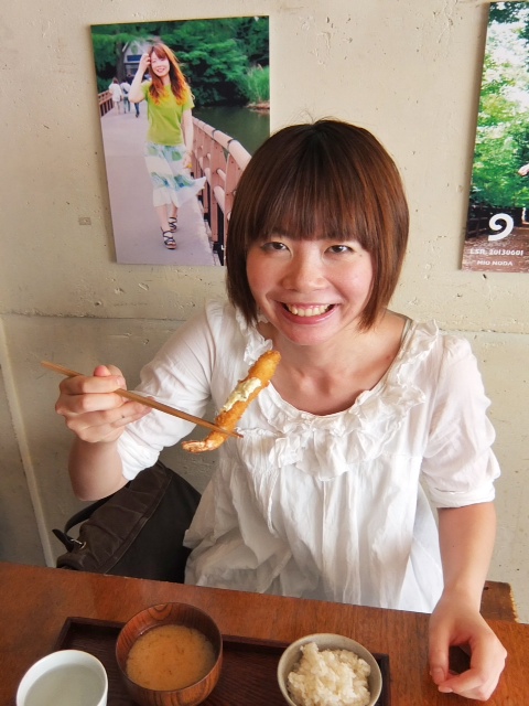 ♩ちゅーうっ・ちゅうちゅちゅ・夏のお嬢さん!ショートカットがとっても似合うよ!…と、えぇ、ずっと長い髪がトレードマークだった当店最年少スタッフはミチャ!いやいやどうしたの!メッチャいいやん!ステキやん!と、えぇ、ショートカット好きのおぢさんは思うわけであります(笑…スミマセン)。 ということで、まだ長い髪時代の今年のTシャツポスターと一緒にパチリ…賄いはエビフライ!イイネ!(笑)(お)