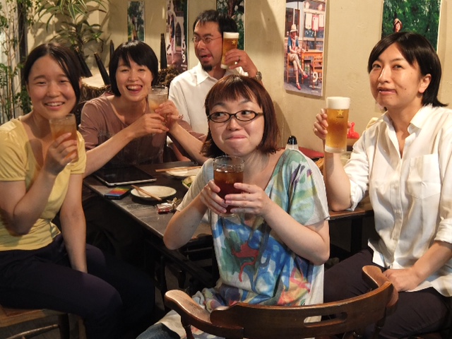 あー、三鷹は夏祭りの週末!がっちり忙しくてもいいからね!だって土曜も日曜も5人だからね!…って、いや、結果的には5人必要だったっけ?…みたいな(苦笑…残念)。 ま、それでも今週もお疲れさんに変わりはないよねと(笑)、久しぶりににゃんさんを加えて5人で乾杯!…って、このシリーズ、最近マンネリだよねと(苦笑)、今夜はみんなでペコちゃん的ベロだしでお揃いのポーズ!…のつもりが、にゃんさん「笑って引っ込めちゃった(笑)」…いいさ、いいさ、かわいけりゃ!(笑)お疲れ山です!(お)
