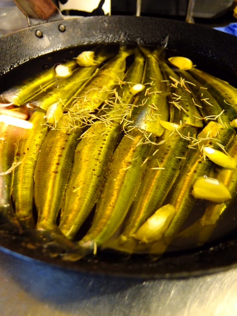 あぁ、本日ボジョレ解禁ということで、当店夜の日替わりメニューもワインにあうメニューが目白押し!…ってな中でも、昨日店長ミヤザキがえいやと下ごしらえしてたのがこちら!ピカピカいわしをにんにくやローズマリーの入ったオリーブオイルに漬けて…じゃがいもを合わせてこのあとひたひた低温でじっくり煮込む…そう!「じゃがいもといわしのコンフィ」!しっかり素材の旨味、まさにワインにうってつけですよ!ぜひぜひ〜!(お)