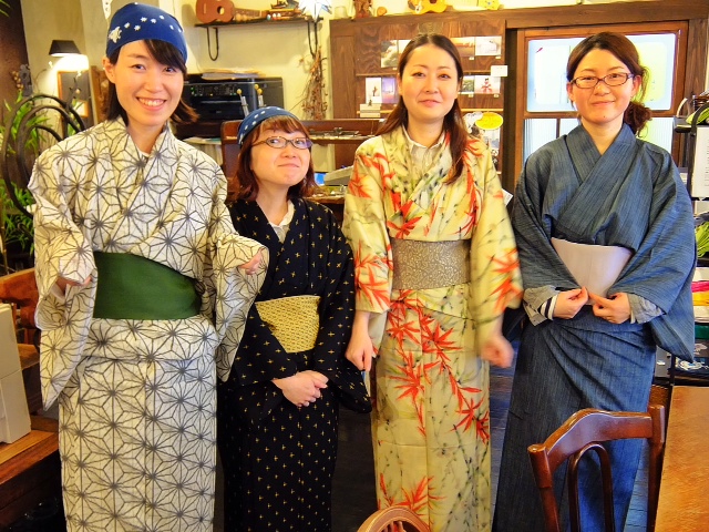 あー、なんなんだ?これはと、お店の業態変わっちゃった?(笑)…って、いや、そんなことないんですよと、えぇ、実はこのところ店長ミヤザキ、重い腰をあげて…母であり、当店永世料理長でもあるミヤザキヨウコの着物を整理しておりまして…って、いやこれが量がハンパなくてさと、だったら若いスタッフ、着物持ってないよねと…じゃ、プレゼントするから持ってくるねと、えぇ、めいめいさらっと羽織ってみました四人娘(笑)…こんなかんじでお出かけしたいねと、ちょっとウキウキな昼下がりでありましたとさ(笑)。(お)