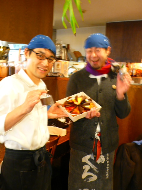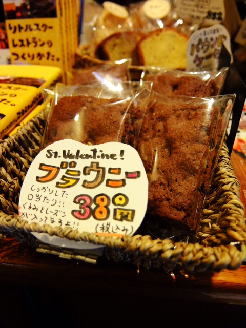 当店バレンタインデザートはもちろんすでにご好評いただいております…あったかとろりの「フォンダンショコラ」でございますが、えぇ、バレンタイン、お持ち帰りのデザートは久しぶりの登場ですね!こいけ菓子店謹製、さっくりとした口当たり、くるみも入ってちょっとリッチなブラウニー!…甘いものがあまり得意でないワタクシも大好き!(笑)…って、その手の男性にはうってつけですよ!ぜひぜひ〜!(お)