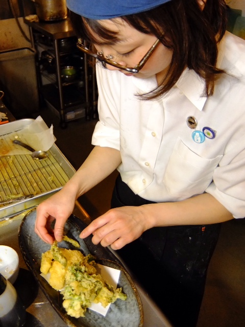 というわけで今週いっぱいで卒業のはまちゃん…彼女の絶妙な揚げもののファンも多かったと思いますけどね(もちろんワタクシも賄いのはま子揚げ、楽しみにしておりました)、えぇ、それもたべおさめですよと、からり揚げたてあつあつ山菜の天ぷら、みなさんもぜひ!(お)