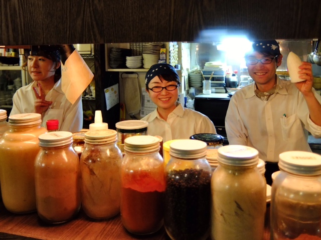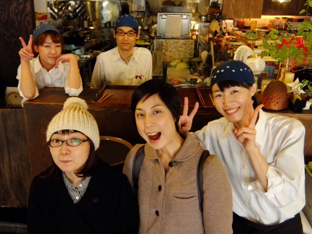 気持ちのよいぽかぽか春の週末は土曜日、本日も店長ミヤザキ不在営業でありますが…と、お昼時、元キッチンスタッフのクロちゃんが顔を出してくれまして、えぇ、揚げものはプロでありましたクロちゃんに、新人くぼさんが「れんこんときのこの豚肉巻き揚げ」を気合いを入れてお出ししたり(笑)…そうこうするうちに今日も助っ人!はまちゃんが出勤してきて、揃いもそろった!リトスタキッチン4世代!…&沼田さんでパチリと写真を撮る昼下がり(笑)。(お)