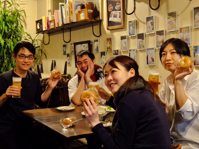 あー、最近日曜深夜の宴会写真が週明けにズレ込むなーと、えぇ、いかんいかん(苦笑)。と、そんな先日の日曜は開催中の「春のチカぱん祭り」!ということで、ワタクシドモももちろん参加しましょう!とおいしいベーグルを手にパチリと(笑)…って、あー、ワタクシだけ「カワイコちゃんのポーズ」ですがなにか?(苦笑)(お)