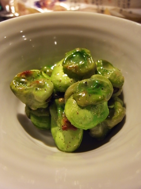 夜のメニューは春から少しずつ初夏のメニューへ!と、先日からお出ししておりますちいさな初夏のメニューは「炒りそら豆」!最近はそら豆の鞘ごと焼いた「焼きそら豆」も流行ってる?…って、いやいや当店的にはオリーブオイルでじゃじゃっと炒めたそら豆、あつあつにぱぱっとブラックペッパーでアクセント!薄皮ごとぱりっとたべるのがワイルドでイイネ!もちろんひえひえビールにうってつけ!ぜひぜひ!(お)