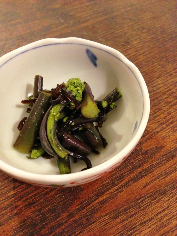 盛岡の友人(と言っても良いよね?)熊ケ井旅館のシェフが、お客さんで友人のライダー夫妻に託してくれた、春のお届けもの。盛岡からバイクで一路三鷹まで、ありがとうございました!わらびを塩昆布で和えてみました。シンプルで美味しい〜。お通しとしてお出しします!但し7名様まで。本日予約なしのため、出会える確率も高いかも? ダイスケさん、いただきまーす。