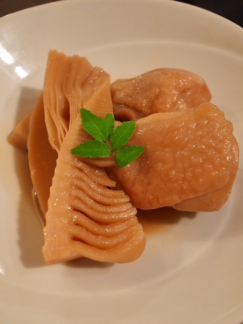 春のたけのこの煮物と言えば新わかめと合わせたあっさり「若竹煮」が人気ですけど、えぇ、たまにはこってり甘辛!シャキシャキたけのこの食感に、じっくり旨味の鶏肉!…あぁ、こりゃおいしいに決まってますな!「たけのこと鶏肉の煮もの」(そのまんまやな…笑)、おススメですよ!(お)